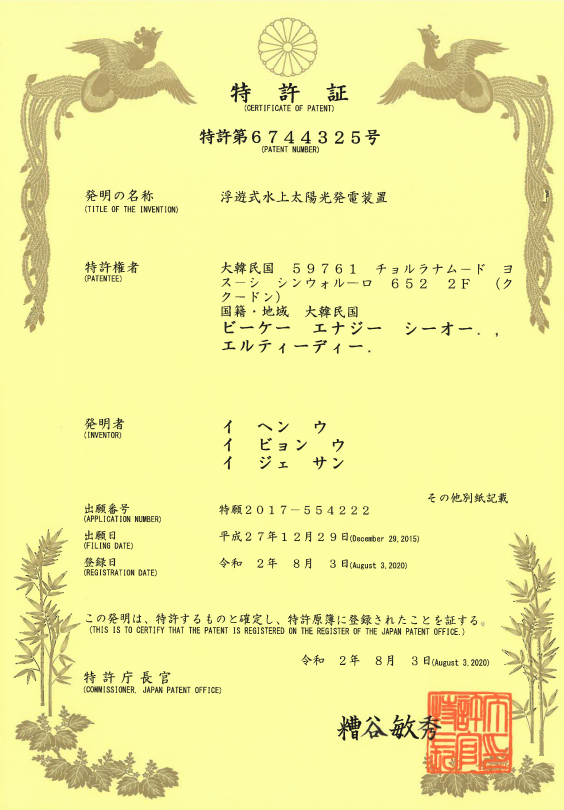 Patent No. 6744325(Japan)
